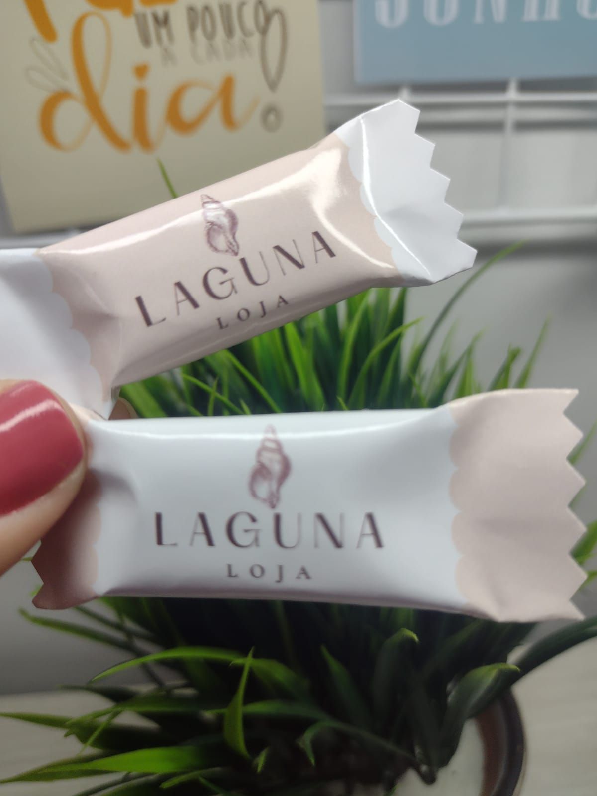Adesivo em papel envoltas em balas de yogurt